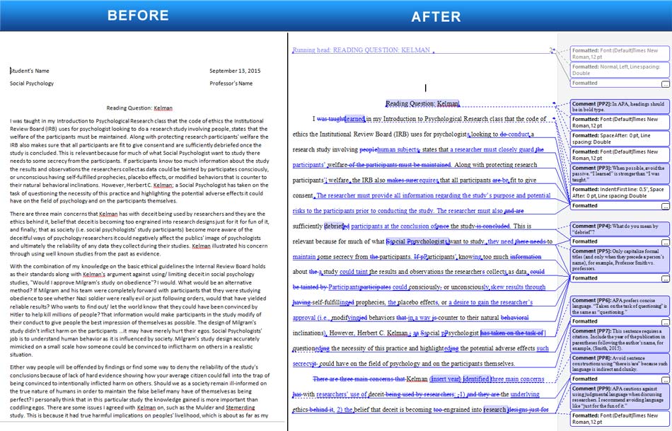 Whether your document is an intimately personal reflection or a rigorously documented analysis, your proofreader can help you adhere to your professor’s requirements while refining vocabulary, clarifying punctuation and grammar, and standardizing spelling and formatting. In turn, you’ll have the confidence that comes from knowing that a seasoned professional has reviewed your work before you submit it for your final grade—and the benefit of the years we have spent helping authors produce unforgettable writing. When you have Polished Paper on your side, you can speak with the voice of experience.